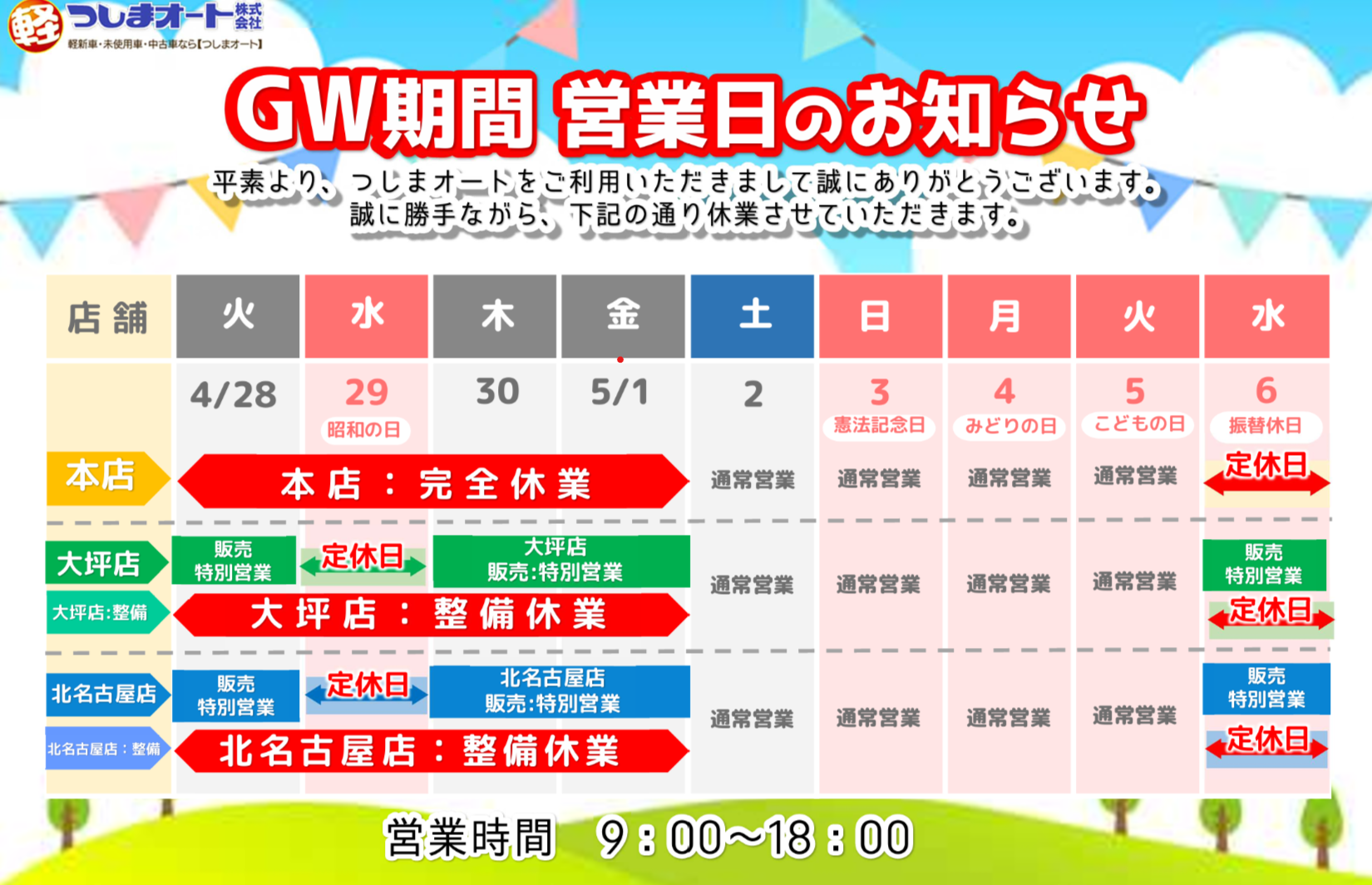 【GW休業】4/28~5/1